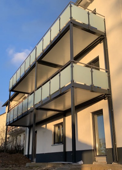 Unsere Standardsysteme eignen sich für Gebäude bis zur 5. Etage. Balkonanlagen darüber hinaus können objektbezogen geplant und gefertigt werden.